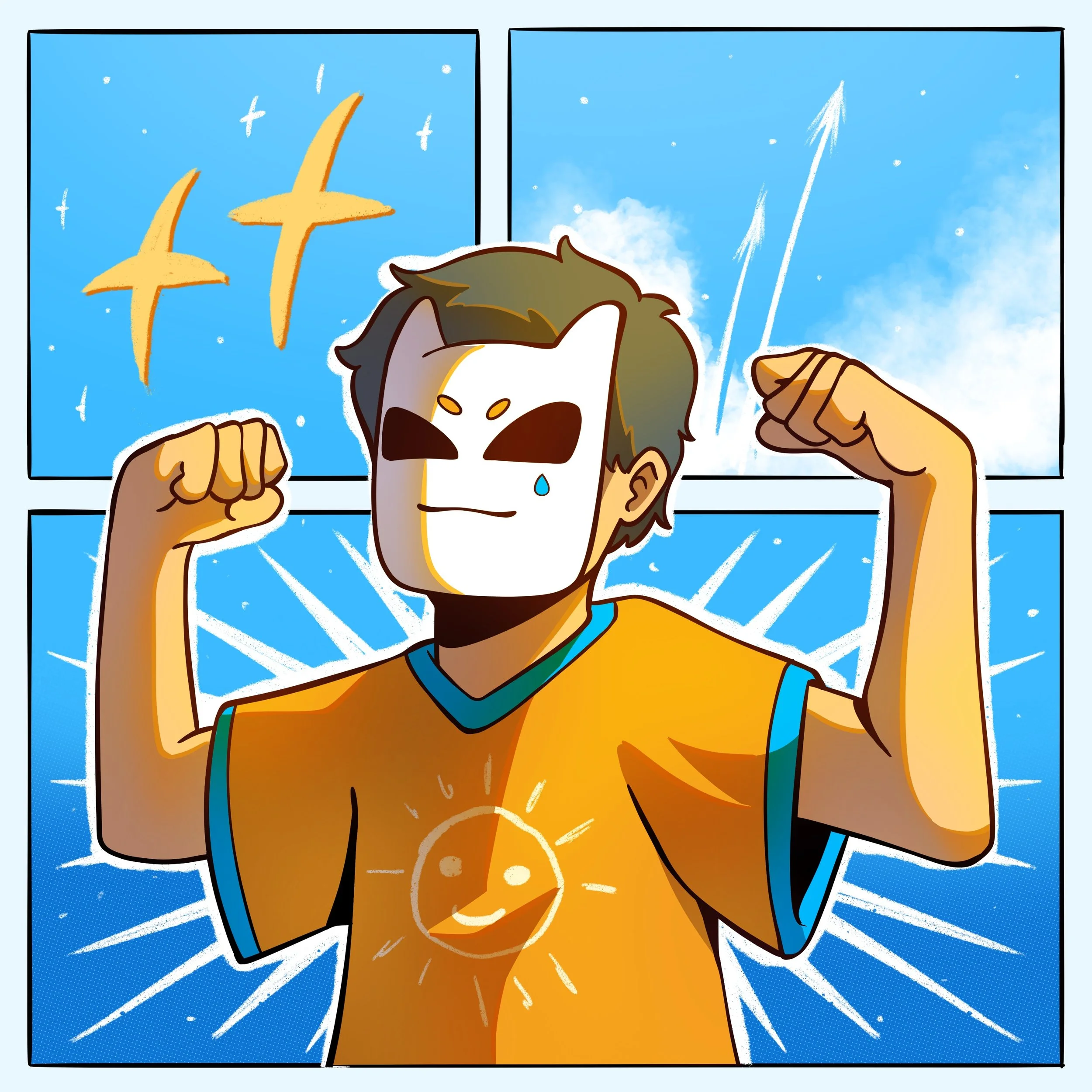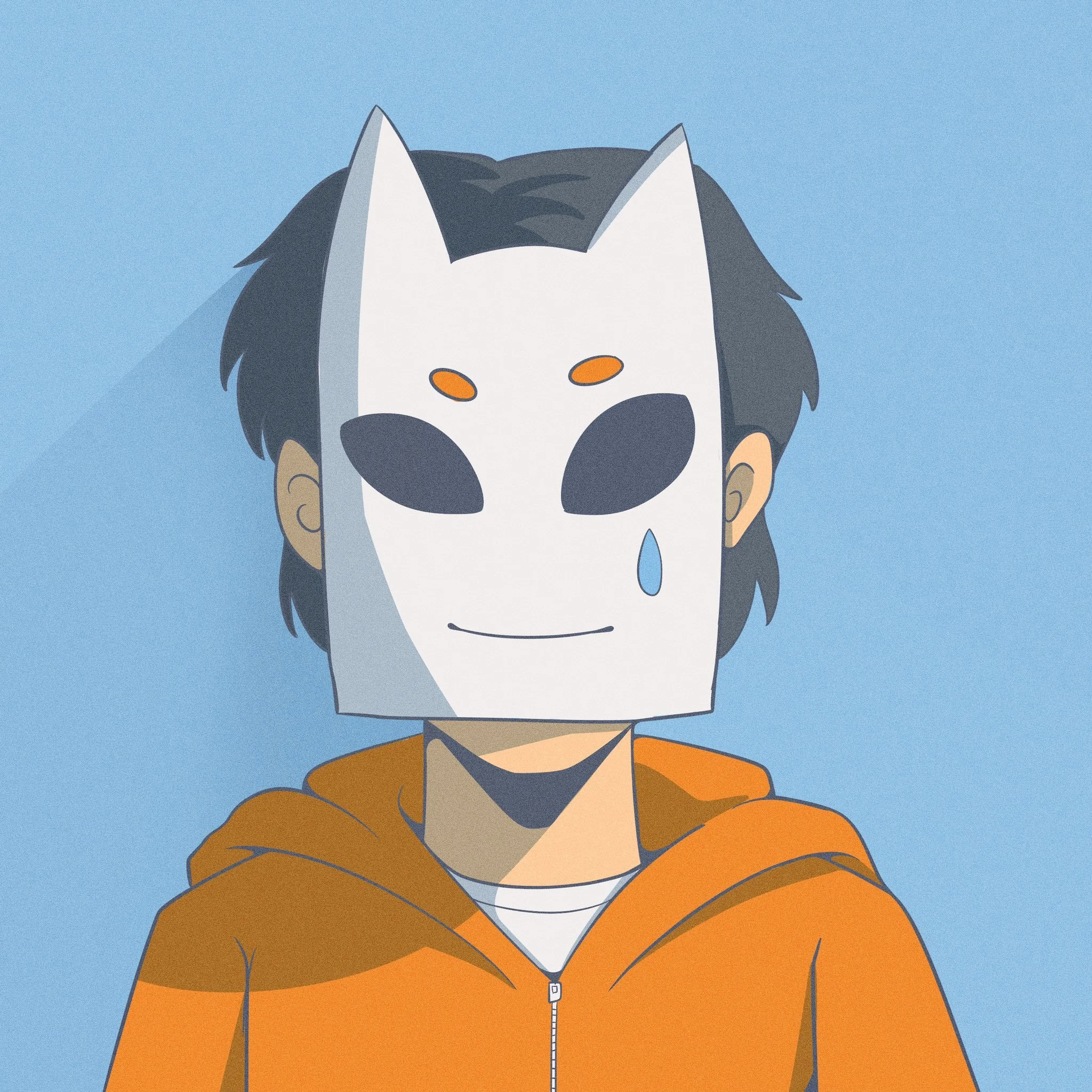 At the centre of his world is Ainz, a masked character that’s not just imagined, but lived. Ainz is Mada’s way of moving freely, creating without limits, and expressing all the things that can’t be said out loud. It’s not just a persona; it’s a portal to joy, tension, calm, and chaos. All wrapped in vibrant strokes of blue and orange.
